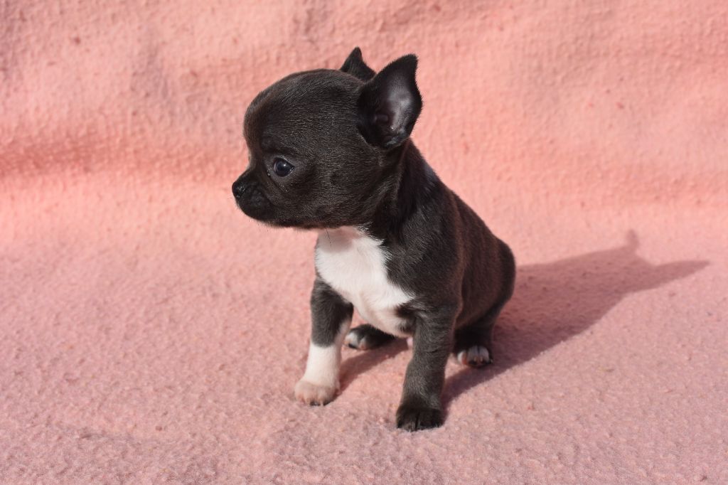 Ce joli mâle noire et blanc à court est coquin, joueur, très câlin, une véritable machine à bisous et très tendre. Un vrai petit pot de colle.